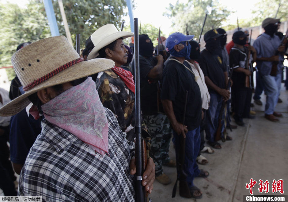 当地时间1月30日,墨西哥南部格雷罗州Ayutla de los Libres的一个小镇,数以百计的平民拿起枪支和刀具等武器,武装起来,对抗当地猖獗的抢劫、绑架和谋杀等犯罪行为。据悉,格雷罗州是墨西哥受毒品暴力事件影响最大的一个州,自2006年以来,已有超过7万人死于各类毒品暴力事件。