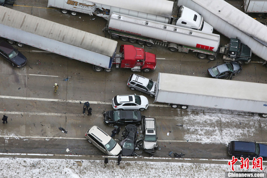 美国暴雪天气致30多辆车连环相撞 已有3人死亡