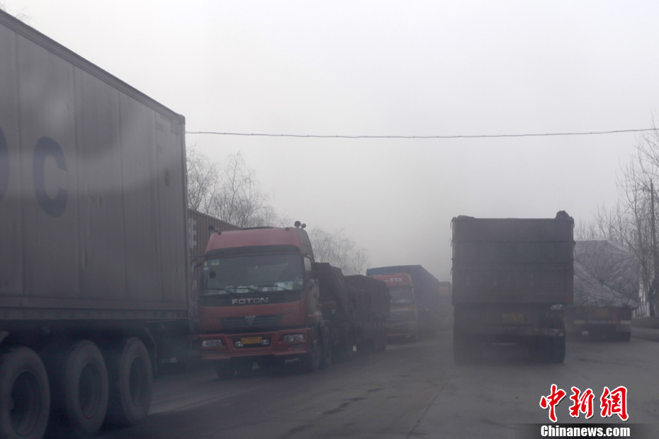 河南义昌大桥坍塌 大量货车涌入310国道引起堵塞