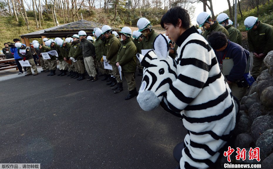 日本举行应对动物逃脱演习 人扮斑马被制服