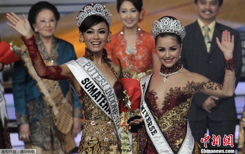 2013年2月1日,印尼雅加达,2013年“印尼小姐”选美比赛冠军新鲜出炉,2012“环球小姐”冠军现身助阵。