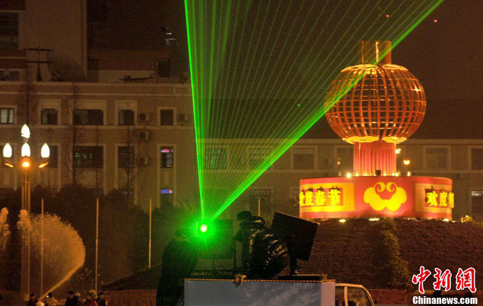 2月2日晚,成都天府广场上演了一场唯美“激光秀”,吸引了前来的民众在此驻足欣赏。几束激光从天府广场中央发出,再射向天空,与城市夜景相映生辉。刘杰 摄
