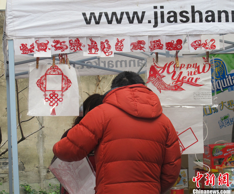 上海“洋集市”,春节元素提前走俏。春节剪纸走俏上海“洋集市”。这个坐落于上海徐汇区的嘉善老市,每隔一个星期的周末,都有沪上外籍人士在这里相聚而市。郑莹莹 摄