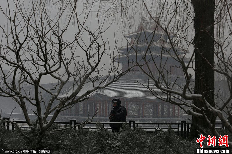 据中央气象台预计,从2月2日夜间开始,未来五天内中国中东部地区将再次出现一次大范围的雨雪天气过程。降雪天气将使得连日来多地地雾霾散去后的空气再次得以洗涤,不过也会即将过节返乡的人们交通出行造成不利影响。图为2月3日,北京出现降雪,气象台发布道路结冰黄色预警信号。玉龙 摄 图片来源:CFP视觉中国