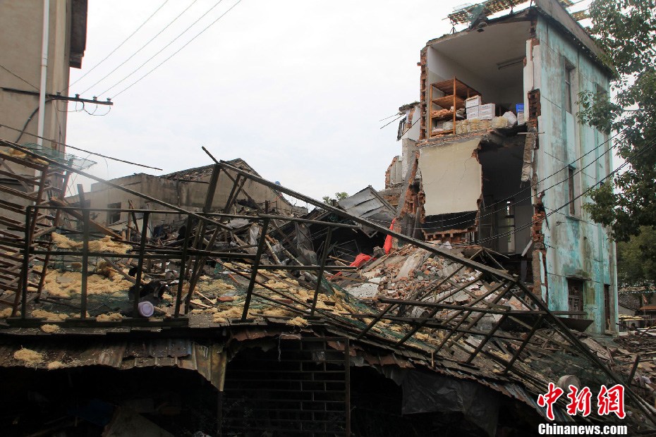 2月3日上午11时20分许,位于浙江省宁波慈溪浒山街道施山社区的雅群面店发生一起疑似锅炉爆炸事故,事故目前已造成5人死亡,6人受伤,三间三层楼房部分倒塌。中新社发 何蒋勇 摄