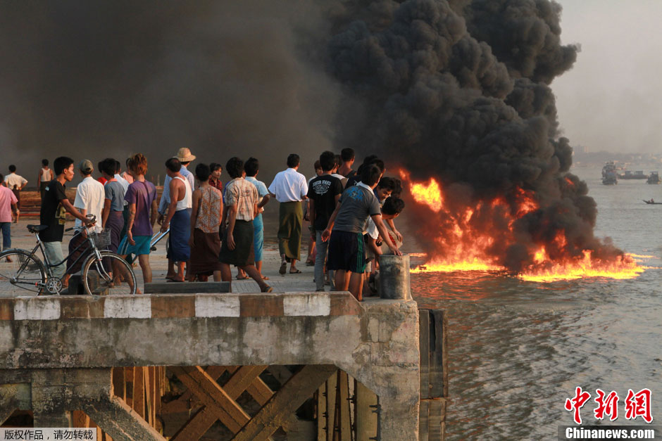 缅甸一油轮爆炸引发火灾 已致4人死亡3人受伤