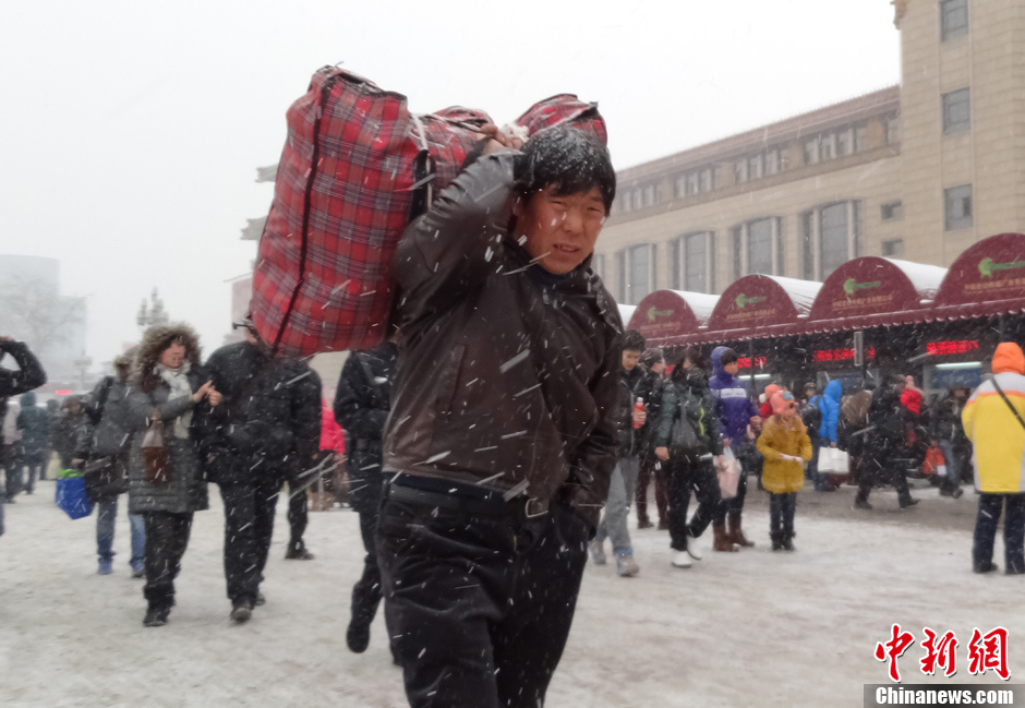 春运镜头:雪天归乡 北京进入春运离京高峰