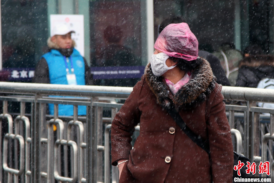 2月5日,北京在大雪中迎来春运客流高峰,旅客在北京西站冒着风雪踏上返乡的旅程。中新社发 韩海丹 摄