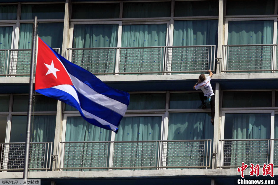 法国“蜘蛛人”徒手攀爬古巴27层高楼成功