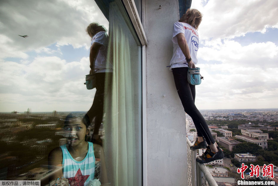 法国“蜘蛛人”徒手攀爬古巴27层高楼成功