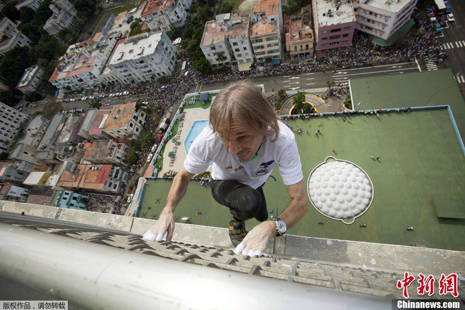 当地时间2月4日,古巴哈瓦那,法国“蜘蛛人”Alain Robert在没有安全设备的保护下,成功攀爬高度达到126米的哈瓦那利贝酒店。
