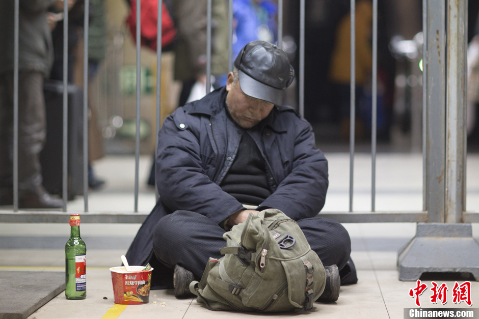 2月5日,北京在雪中迎来春运客流高峰,旅客在北京西站踏上返乡的旅程。中新社发 盛佳鹏 摄