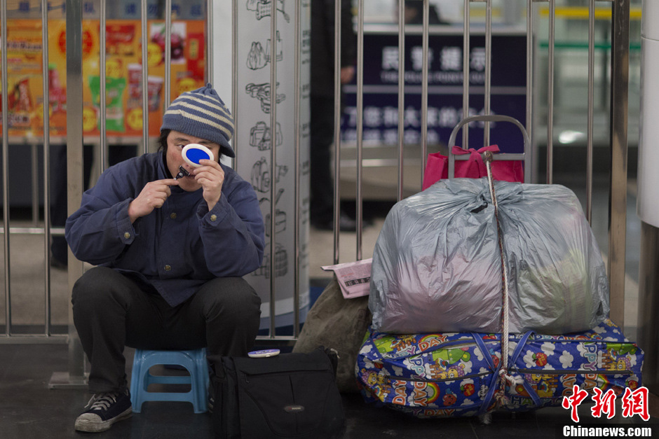 2月5日,北京在雪中迎来春运客流高峰,旅客在北京西站踏上返乡的旅程。中新社发 盛佳鹏 摄
