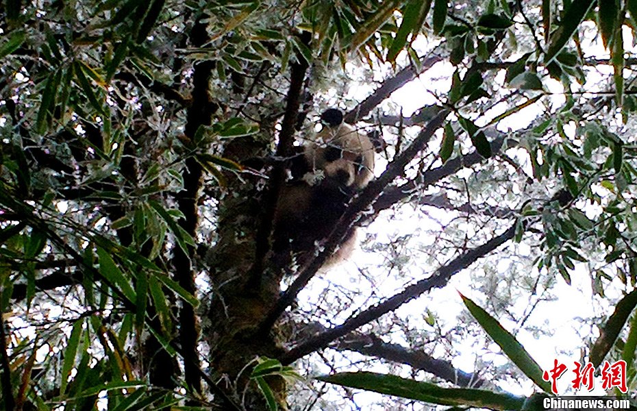 2月5日,卧龙中国保护大熊猫研究中心向媒体通报了中国首只回归大自然大熊猫“淘淘”在野外生存的情况,称其健康状况良好,已良好的适应了野外环境。卧龙中国保护大熊猫研究中心表示,“淘淘”于2012年10月11日在雅安石棉县栗子坪保护区正式放归自然,3个多月以来,工作人员监测到“淘淘”采食、活动等方面均正常,判断其身体健康,活力较好,已经良好的适应了野外环境。图为“淘淘”在野外树上。卧龙大熊猫研究中心 供图