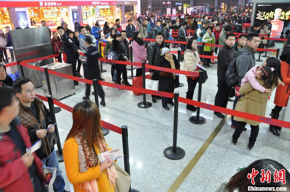 2月6日2时30分左右,成都双流机场遭受浓雾天气袭击,机坪及跑道的能见度仅有30米左右,达不到航班正常起降的要求,机场被迫从2时30分左右开始关闭。预计浓雾到上午11时左右才会散去,航班才能恢复飞行。受其影响,6日所有航班延误,到7时机场候机楼已有约9000名旅客滞留。图为旅客被迫滞留机场。吕俊明 摄