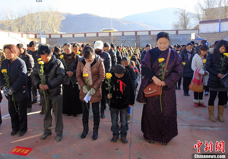 2月6日,四川甘孜藏族自治州炉霍县发生地震40周年,当地社会各界千余民众聚集一起,缅怀在地震中遇难的同胞,感恩救灾的救援者。经过40年的建设和发展,如今炉霍震灾区已发生了翻天覆地的变化。1973年2月6日18时37分05秒,炉霍县发生7.9级地震,灾难造成当地2204人遇难,绝户80户,遗留孤儿43人,县城也被夷为平地。图为四川炉霍地震发生40周年当地民众开展纪念活动。中新社发 杨孝康 摄