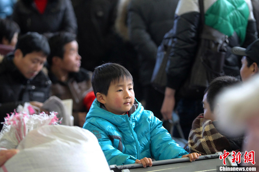 2013年2月7日,在江苏南通汽车站,很多等候回家团聚乘客的眼神或焦虑,或期盼,或专注,无不透露出归乡的急切心情。许丛军 摄 图片来源:东方IC 版权作品 请勿转载