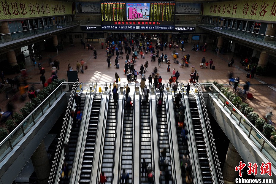 2月8日,大批旅客从北京西站乘车离京。明日将进入春节黄金周假期,铁路、公路、民航运输9日将全面迎来节前客流最高峰。中新社发 富田 摄