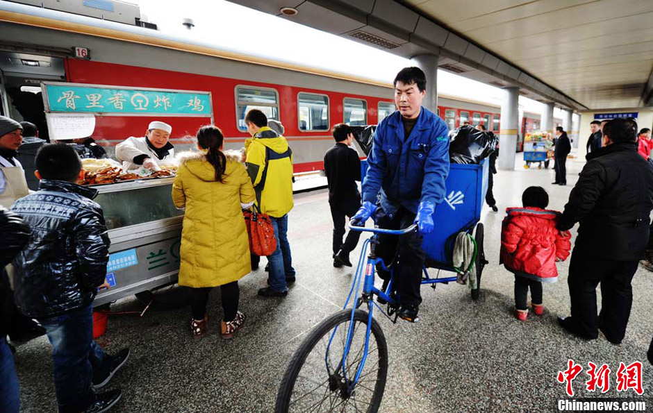 2月8日,临近春节,当成千上万的旅客踏上与家人团聚、喜迎新春的旅途时,在兰州火车站有这样一些人正穿梭于匆匆而过的旅客中,他们就是铁路春运边缘人——垃圾清运工。他们一共有10个人,分两班倒负责兰州车站5个站台以及股道间、东西岔区的保洁和列车上送下垃圾的清运工作。兰州车站每天要派出80余名垃圾清扫工,24小时不停在公共区域清扫。