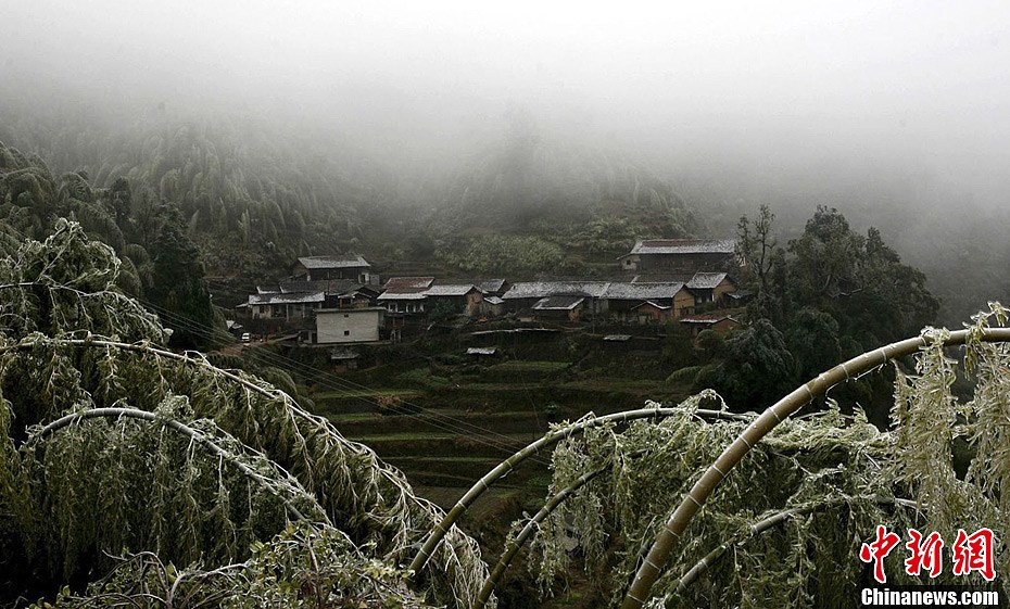 闽北迎来冻雨 压弯高山区毛竹