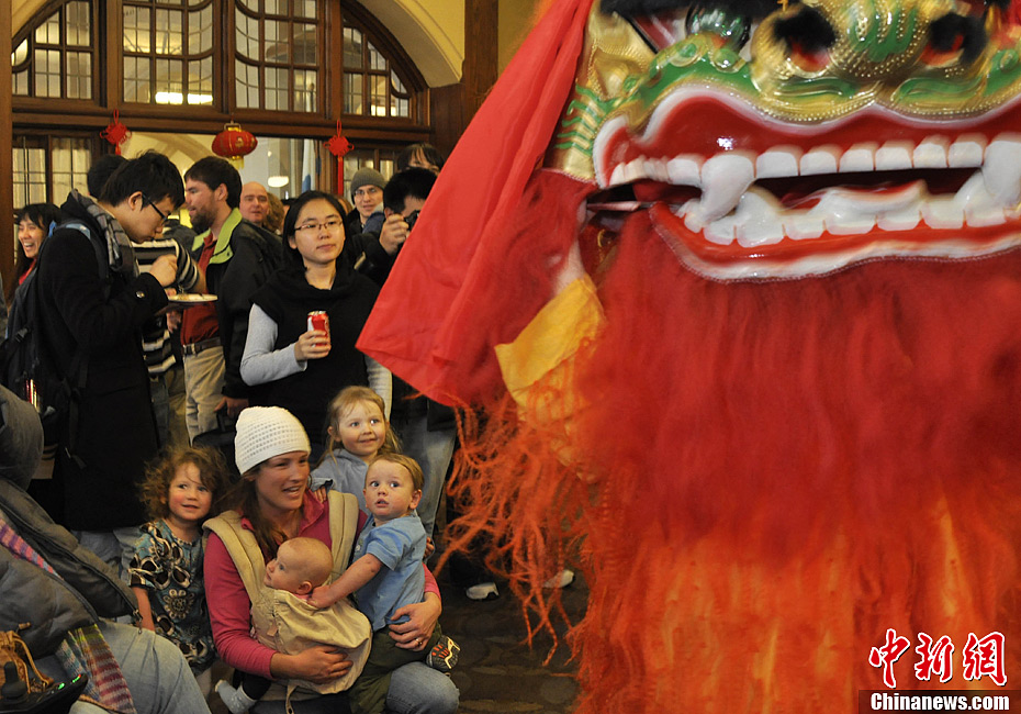 美国学生舞狮迎蛇年