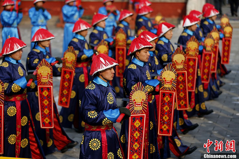 2月9日,蛇年春节除夕,“皇帝”祭地表演在北京地坛公园方泽坛上演。当日北京地坛春节文化庙会拉开帷幕。北京地坛庙会始办于1985年,每年参观游客均突破百万人次。春节逛地坛庙会,更是北京民众沿袭多年习俗。中新社发 富田 摄