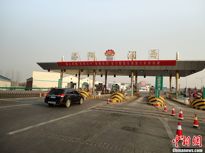2月9日,车辆无障碍免费通过连霍高速洛阳涧西收费站。当日,2013年春节期间小型客车免收通行费政策在零点正式开始,结束时间为2月15日24∶00,7座及以下小型载客汽车(包括允许在普通收费公路行驶的摩托车)可以享受免费政策。收费站免费道口实行不发卡抬杆放行。中新社发 崔楠 摄