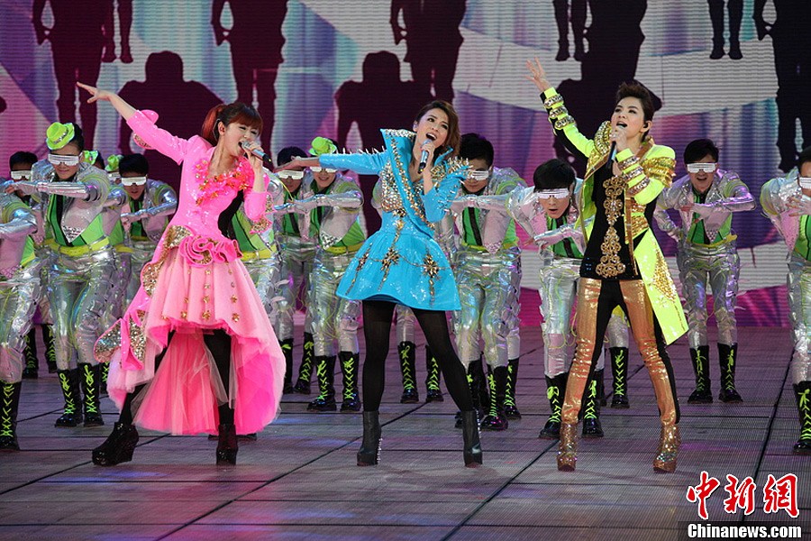 2月10日凌晨,万众瞩目的央视春晚在一片欢呼喝彩声中圆满地落下了帷幕。当《难忘今宵》这熟悉的旋律再次响起,亿万电视观众在一场超赞的视听享受中欢度了癸巳蛇年的新春佳节。2013年恰逢央视春晚第三十一年的全新起航,四个半小时的直播以“新春中国”为主题,分新春到、新喜来、新意展和新篇开四个节目群。全场晚会结构紧凑,主题鲜明,看点颇多,艺术水准极高。图为S.H.E献唱。图片来源:东方IC 版权作品 请勿转载