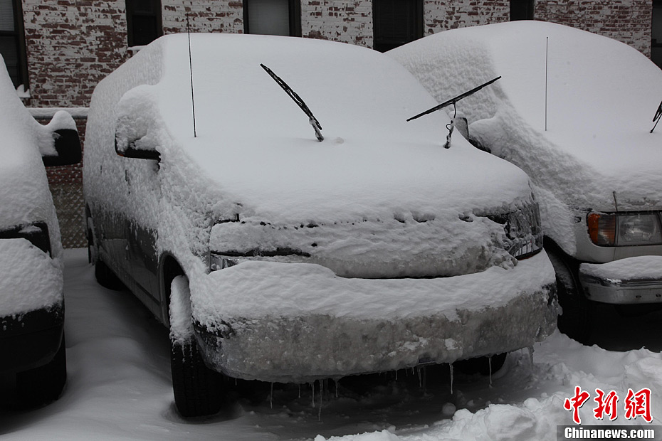 美国东北部地区遭超级暴风雪袭击,9日,大雪覆盖了美国东北部地区,部分地区出现创纪录的降雪,交通受到严重影响,65万户家庭出现电力供应中断。图为9日上午,暴风雪天气过后,纽约一家停车场的汽车被厚厚的积雪覆盖。中新社发 阮煜琳 摄