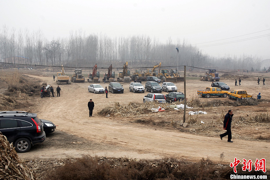 2月15日山西省洪洞县曲亭水库灌溉输水洞洞顶垮塌,导致下游坝体出现管涌,满蓄1900万立方米的水库几近干涸,坝体塌陷长度近300米。截至记者发稿时止,临汾市委、市政府成立抢险指挥部,下设现场抢险组、综合协调组、交通保障组、安全保卫组、电力保障组和医疗保障组。目前,暂无人员伤亡报告。图为2月16日,抢险现场。张云 摄