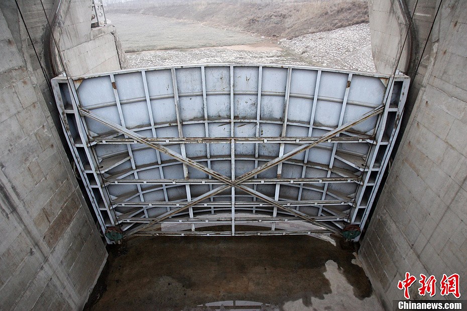 2月15日山西省洪洞县曲亭水库灌溉输水洞洞顶垮塌,导致下游坝体出现管涌,满蓄1900万立方米的水库几近干涸,坝体塌陷长度近300米。截至目前,临汾市委、市政府成立抢险指挥部,下设现场抢险组、综合协调组、交通保障组、安全保卫组、电力保障组和医疗保障组。目前,暂无人员伤亡报告。图为2月16日下午,已经干涸的曲亭水库。张云 摄