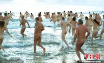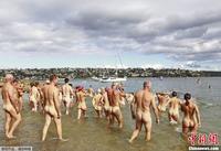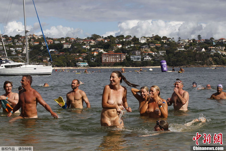 澳大利亚悉尼超过400人集体裸泳 为慈善筹集资金