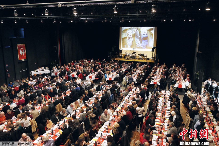 当地时间2013年2月17日,法国Sarlat-la-Caneda,农业节上,700人同时聚餐享“全鹅宴”。