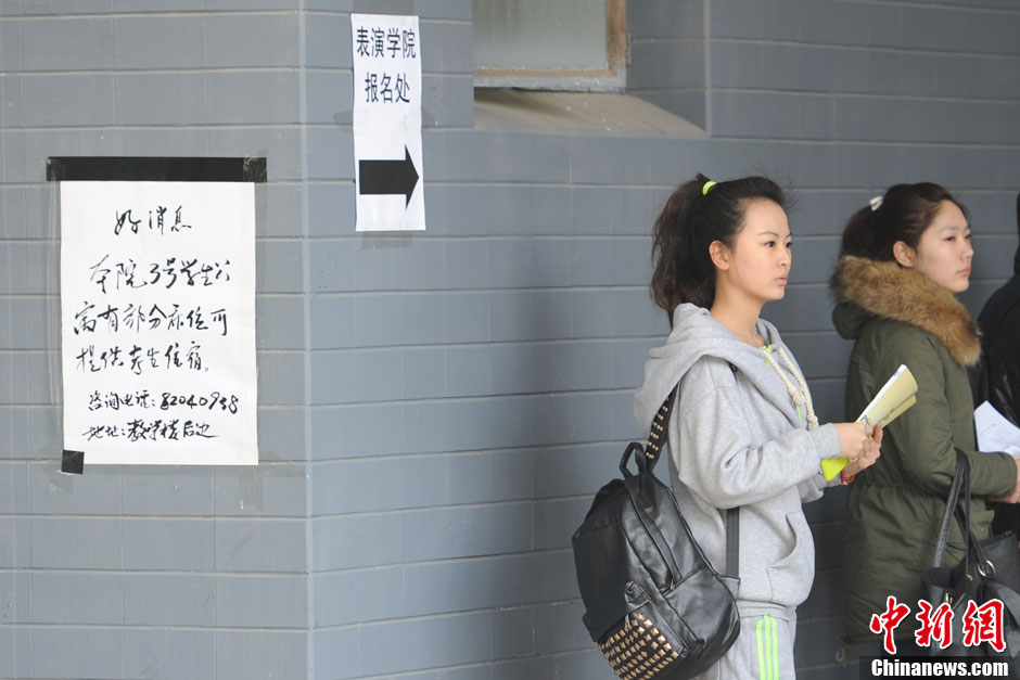 2月18日,北京电影学院2013年招生报名现场。据悉,北京电影学院2013年本科共有10个院系的25个专业方向招生,计划招生513名,采取网上报名加现场确认的报名方式,网上报名已于1月10日启动,2月17日开始现场确认环节。中新网记者 张龙云 摄
