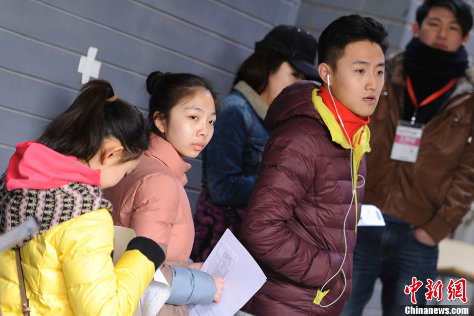 2月18日,北京电影学院2013年招生报名现场。据悉,北京电影学院2013年本科共有10个院系的25个专业方向招生,计划招生513名,采取网上报名加现场确认的报名方式,网上报名已于1月10日启动,2月17日开始现场确认环节。中新网记者 张龙云 摄