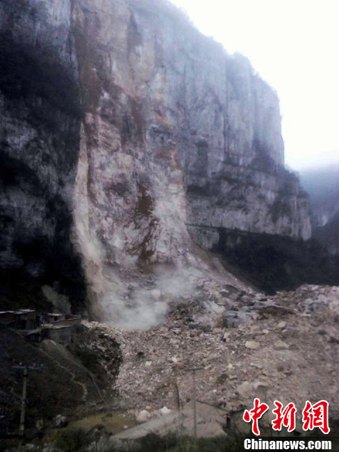 贵州凯里市龙场镇18日发生山体滑坡事故,初步估计至少有4人被埋。目前,救援人员已赶赴现场。山体滑坡原因正在调查之中。图为事故现场(手机拍摄)。唐云芳 摄 图片来源:CFP视觉中国唐云芳 摄 图片来源:CFP视觉中国
