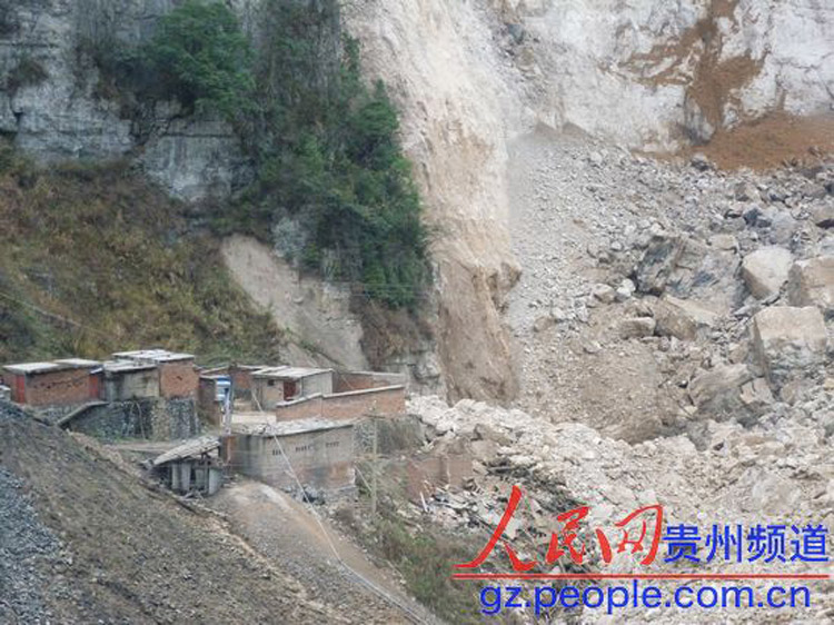 18日,贵州省黔东南州凯里市龙场镇鱼洞村山体崩塌现场。18日上午11时左右,贵州省黔东南州凯里市龙场镇鱼洞一煤矿附近发生一起山体崩塌事件,目前已造成多栋房屋被掩埋。图片来源:人民网