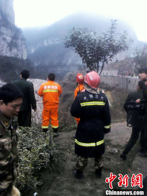 贵州凯里市龙场镇18日发生山体滑坡事故,初步估计至少有4人被埋。目前,救援人员已赶赴现场。山体滑坡原因正在调查之中。图为救援人员在现场救援(手机拍摄)。图片来源:CFP视觉中国