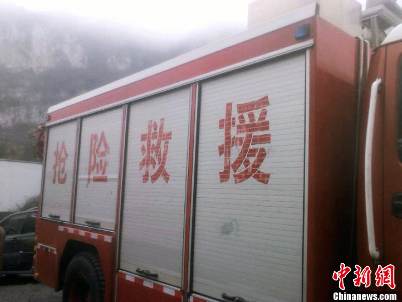 贵州凯里市龙场镇18日发生山体滑坡事故,初步估计至少有4人被埋。目前,救援人员已赶赴现场。山体滑坡原因正在调查之中。图为救援车抵达现场(手机拍摄)。图片来源:CFP视觉中国