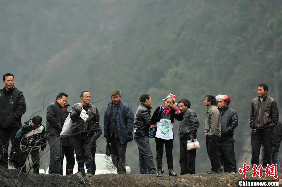 2月18日,贵州凯里发生山体滑坡。图为山体崩塌事故现场附近,人们在等待救援消息。图片来源:CFP视觉中国