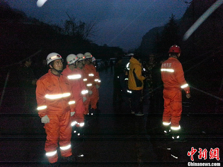 2月18日11时30分许,贵州省凯里市龙场镇鱼洞村平地煤矿处岔河百余米高的山体发生崩塌,掩埋了春节期间放假值守的工棚,初步核实有5人在此次崩塌中失踪。事故地点位于凯里市龙场镇鱼洞村下院组两岔河口处凯施公路旁的平地煤矿处,据进一步核查,这起山体滑坡滑坡高约100米,宽约30米,滑坡量约5400立方米。截至18日14时35分,事故地点山体仍然在发生零星崩塌,具体被掩埋人数有待进一步核实。图为救援现场。中新社发 赵队 摄