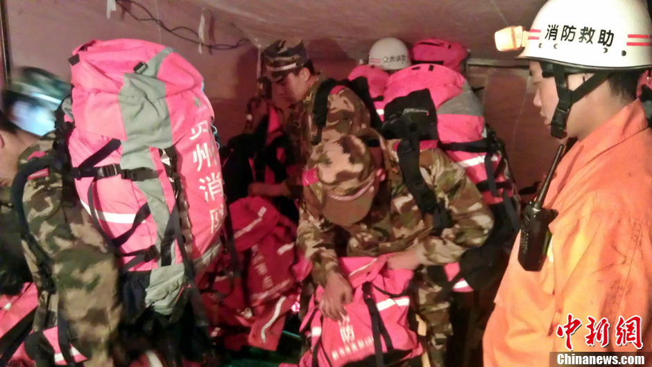截止2月18日19时45分,事故地点山体还在发生大量崩塌,根据现场勘察专家的建议,目前还不具备救援条件,现场自然灾害点周边21户79人以及救援指挥部正在按照专家的建议转移至安全地带。图为救援队员正在整理装备。中新社发 李桐 摄