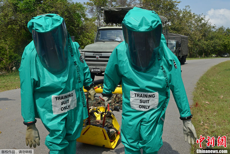 当地时间2月19日,作为“金色眼镜蛇”多国军演的一部分,化学生物武器以及辐射爆炸演习在泰国的一个海军基地举行。
