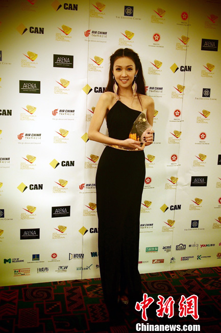 2013年2月18日,澳门,由华语电影节协会主办的金考拉国际华语电影节,每年都会在农历新年期间于澳洲的主要城市举办,今年第三届的颁奖典礼刚于悉尼时间2月18日晚上举行,香港代表薛凯琪凭着新晋导演冯志强的《悬红》获得最佳女演员奖。图片来源:东方IC 版权作品 请勿转载