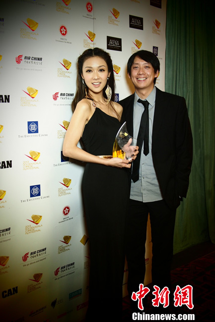 2013年2月18日,澳门,由华语电影节协会主办的金考拉国际华语电影节,每年都会在农历新年期间于澳洲的主要城市举办,今年第三届的颁奖典礼刚于悉尼时间2月18日晚上举行,香港代表薛凯琪凭着新晋导演冯志强的《悬红》获得最佳女演员奖。图片来源:东方IC 版权作品 请勿转载
