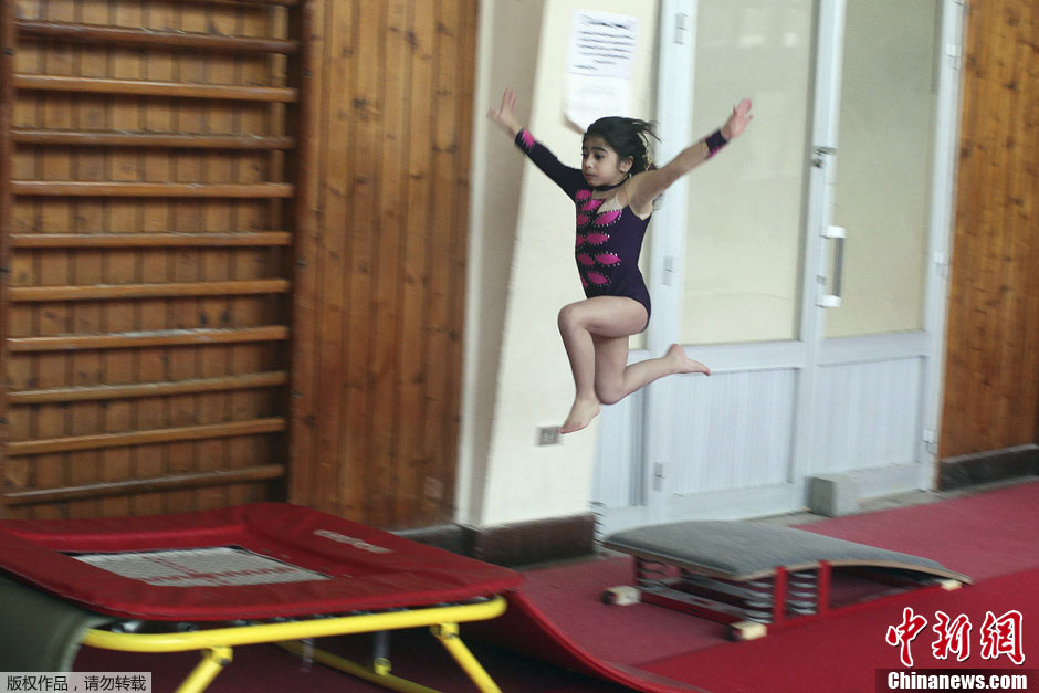 当地时间2月18日,埃及亚历山大,一名小学员在进行跳马练习。