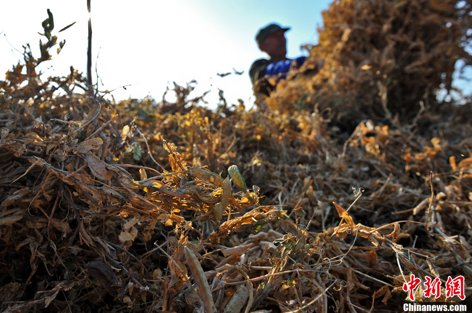 2月20日,云南省楚雄州永仁县已120多天未降雨,加上自2009年开始,连续干旱,导致土地里的耐旱作物豌豆颗粒无收,村民只能收割后拿去喂猪。据了解,目前干旱已造成云南省60.4万人、33.5万头大牲畜出现不同程度饮水困难。中新社发 任东 摄
