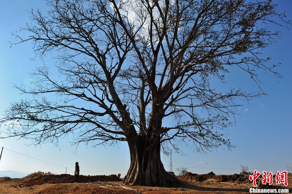 2月20日,云南省楚雄州永仁县已120多天未降雨,连年干旱使当地一颗有百年树龄的榕树枯死,附近村民无不惋惜。据了解,目前干旱已造成云南省60.4万人、33.5万头大牲畜出现不同程度饮水困难。中新社发 任东 摄