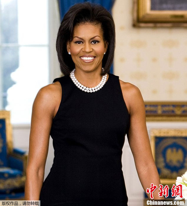 白宫公布奥巴马夫人新官方肖像 发型抢眼