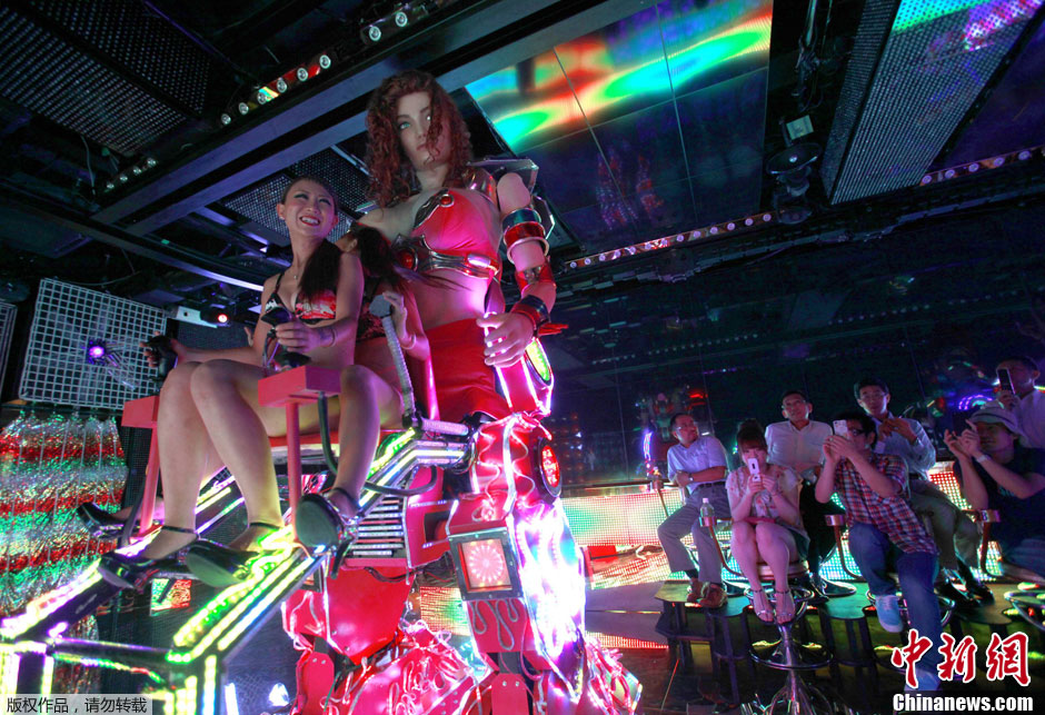 当地时间2012年12月20日,日本东京出现了一家以性感机器人为主题的餐厅,吸引了不少好奇的民众前去捧场。据悉,该机器人餐厅设在东京新宿歌舞伎町,里面有四个高3.6米的巨型性感女郎机器人,它们不但向客人挤眉弄眼,还会跟着音乐节奏舞动双手。
